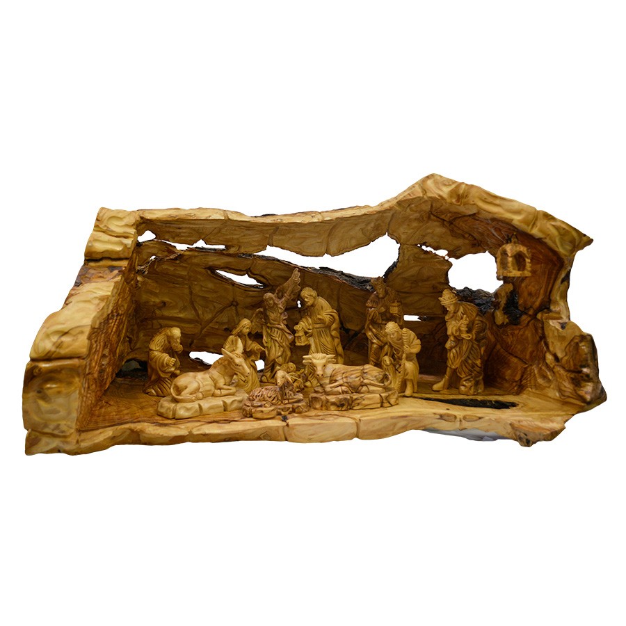 An Authentic Nativity Cave with a fully hand carved very detailed figures